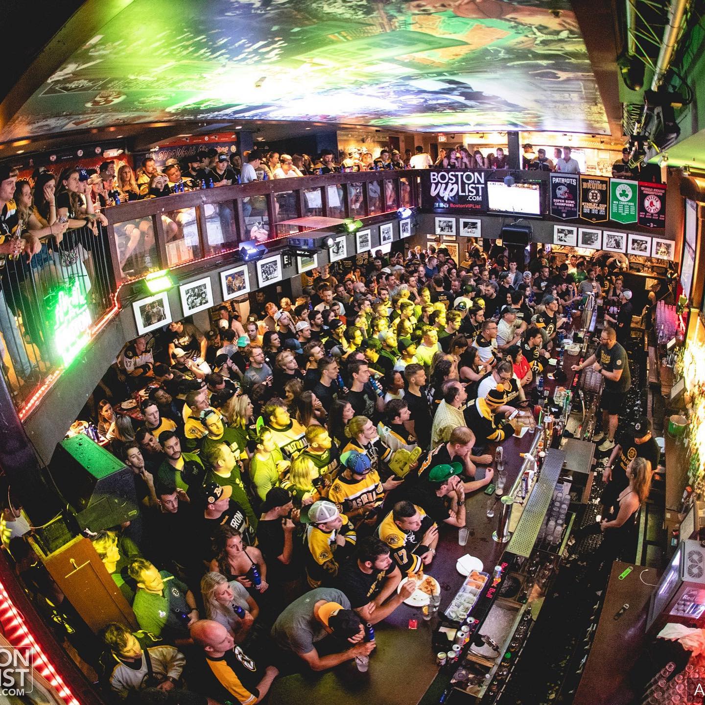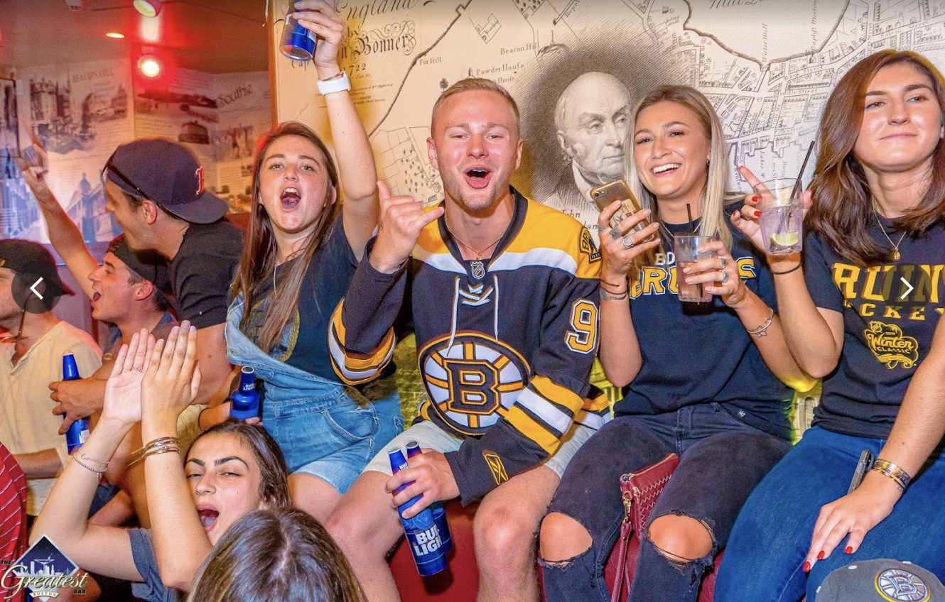 The Greatest Bar is one of the best New England Patriots bars in Boston and the official home of our Patriots fan club. Located near TD Garden, it’s the go-to destination for Patriots watch parties, bringing together die-hard Pats fans for every game. With multiple floors, wall-to-wall TVs, and an electric game-day atmosphere, The Greatest Bar delivers one of the best places to watch Patriots football in Boston. Whether it’s a regular-season matchup or a playoff game, fans pack the bar to cheer on the Patriots together in a loud, high-energy setting built for football.